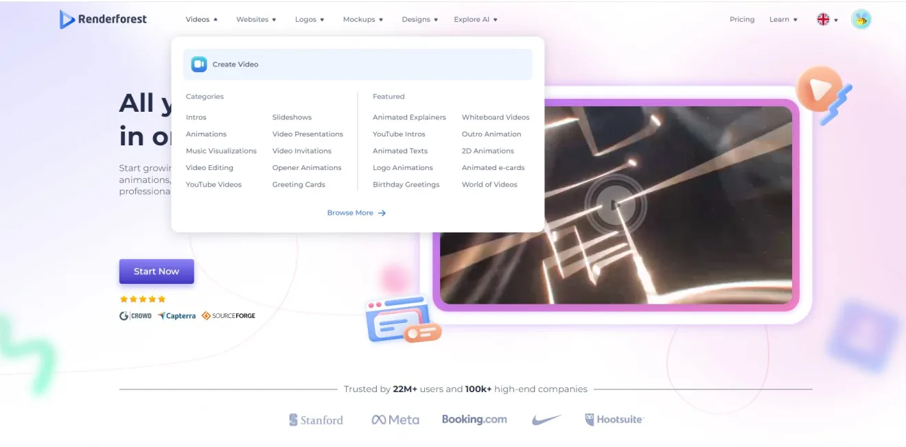 Renderforest je višenamjenska mrežna platforma za izradu iznimno vizualno dojmljivih i funkcionalnih digitalnih sadržaja – visokokvalitetnih videozapisa, animacija, logotipa, grafika, prezentacija, predložaka za vizualizaciju glazbe i mrežnih stranica uz vrlo jednostavnu uporabu za osobe bez osobitih profesionalnih znanja i vještina s područja digitalnoga dizajna te uz relativno malo uloženoga vremena. Nedavno je osmišljena inačica ove mrežne aplikacije za Android i iOS operacijske sustave pa je aplikaciju moguće instalirati i na mobilne uređaje.