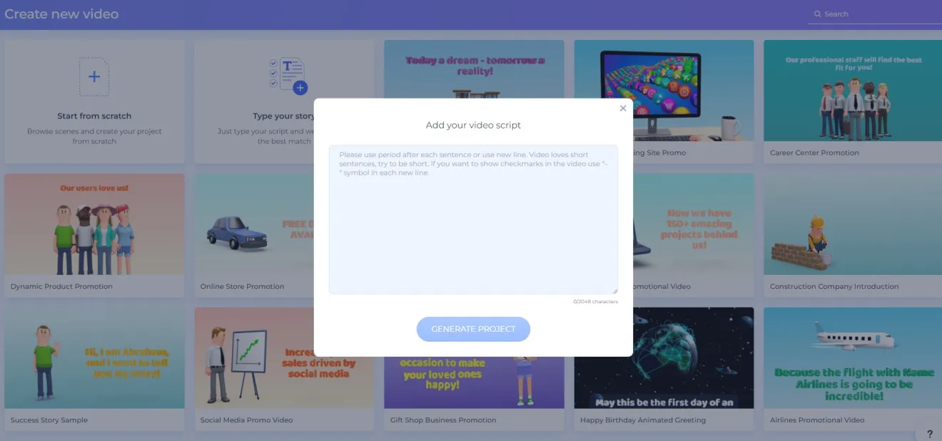 - iako alat nudi bogate pakete scena koje je moguće iskoristiti za izradu videosadržaja (kreću se i do 1000 scena po paketu), nije ih moguće kombinirati sa scenama različitoga paketa