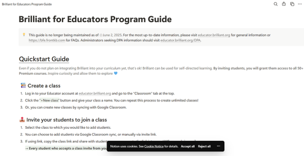 Ova stranica služi kao centralno mjesto za podršku edukatorima, s detaljnim uputama za stvaranje razreda, dijeljenje sadržaja, praćenje napretka učenika i integraciju Brilliant sadržaja u nastavu.