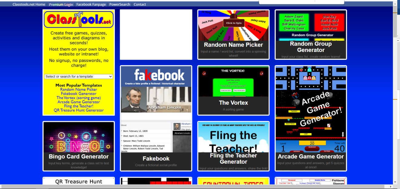- cijeli niz alata za izradu kvizova: The Vortex, Fling the Teacher, Drag-and-Drop Quizmaker, Z-A Quiz Generator te arkada poput PacMana, zmijica, Space Invidersa i dr.