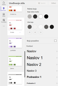- Uređivanje – radni prostor za stiliziranje za primjenu stilova i tema na vašoj stranici