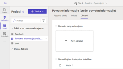 Upravljanje podacima web mjesta pomoću tablica i obrazaca