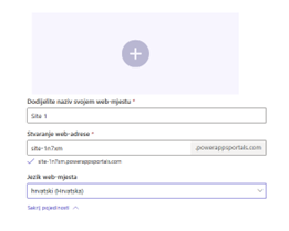 Nakon odabira odgovarajućeg predloška mrežnom mjestu će biti potrebno upisati naziv i potvrditi ili odabrati mrežnu adresu mrežnog mjesta.