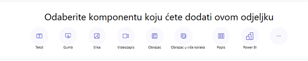 Odabirom ikone + na dnu svakog odjeljka dodaju se novi odjeljci u koje je moguće umetati nove sadržaje.