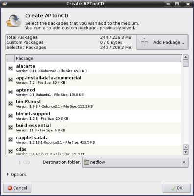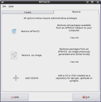 Također, APTonCD ima mogućnost instaliravanja svih snimljenih paketa na lokalno računalo kao i dodavanje medija u repozitorij kojeg koriste apt-get, aptitude i synaptic.